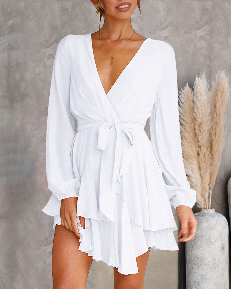 Gebundener Seidiger Geschichtetes Rüschen Ausschnitt Minikleid