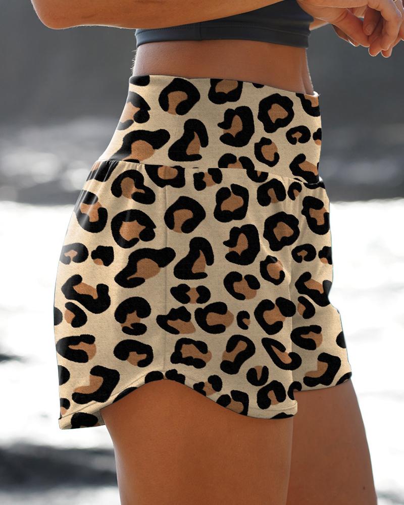 Style:Casual,Sporty Type:Active Shorts Material:Polyester Length:Above Knee Pattern Type:Leopard Decoration:Pocket Fit Type:Skinny With Belt:No Occasion:Daily