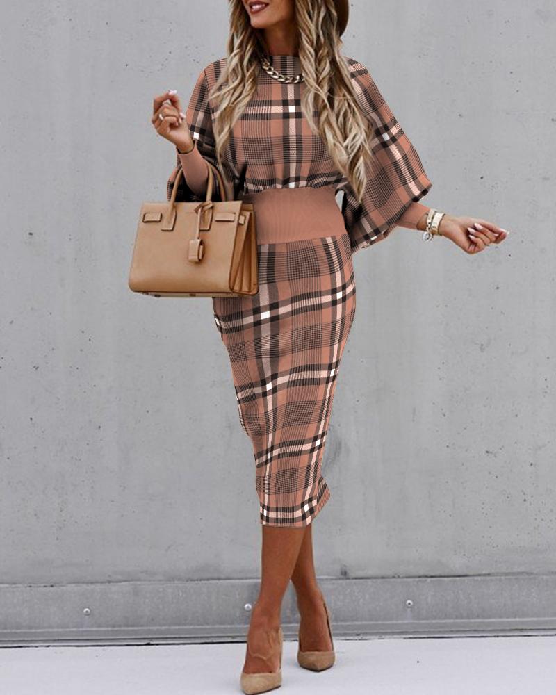 Plaid Print V-Neck Sleeveless Skinny Dress With Belt